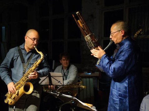 At the centre of the ensemble sat guest Wang Zheng-Ting, this country’s leading expert on the sheng, the Chinese mouth-organ that looks like a cluster of pipes, looking for all the world like a rank neatly extracted from a pipe organ. This artist’s presence gave plenty of significance to the night’s title; both he and Simmons visited kite-maker Wei Guoqiu in Tianjin earlier this year and conceived of this collaboration as an illustration of the Simmons creed with a Chinese flavour.