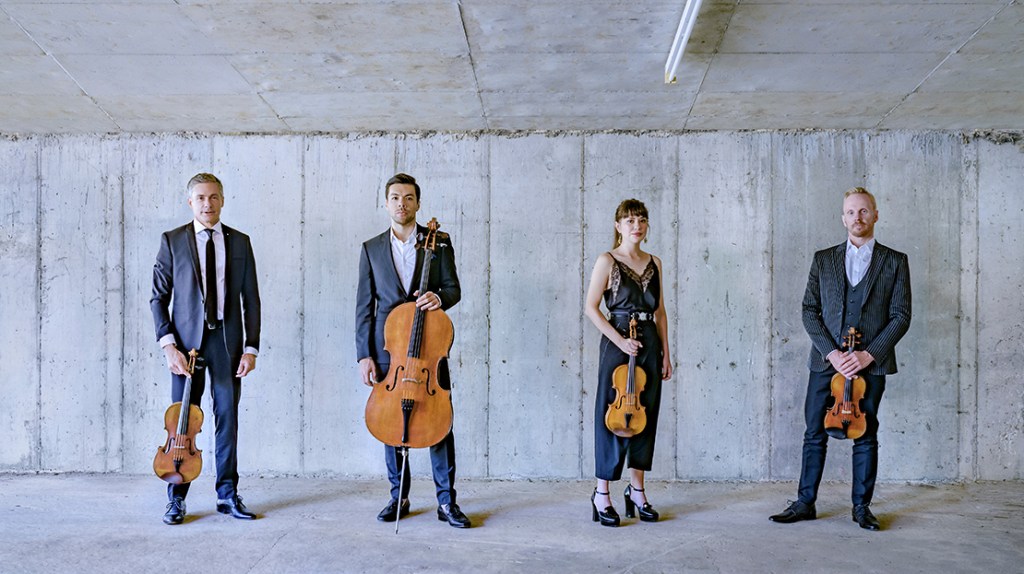 In medias res, the ASQ aired Mendelssohn No. 1 in E flat Major, written in the composer’s 20th year and notable for its second movement Canzonetta which used to be an encore piece for quartets who found few rewards in the other three segments of the score. A different state of affairs on this night when the ensemble gave a warm-bodied and eloquent reading of the opening Adagio/Allegro, its middle and bass registers dominant while Barltrop attempted a counter-argument with a line that rises to a sustained high G twice but keeps below an E flat two octaves-and-a-bit above Middle C for the rest of the movement, for some of the time pursuing a close-current conversation with the rest of the group although the last 34 bars are a typical one-sided coda in the top violin’s favour.